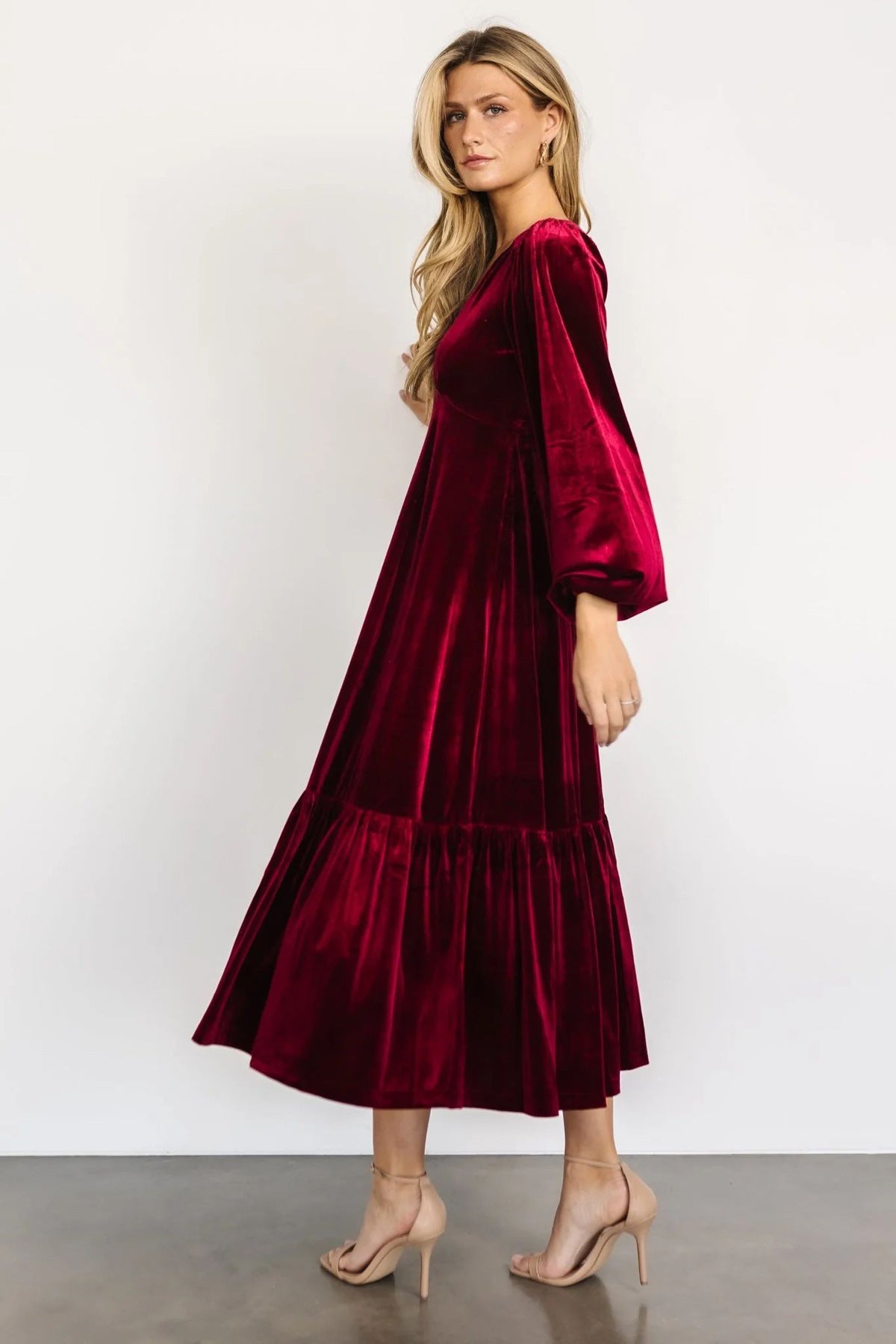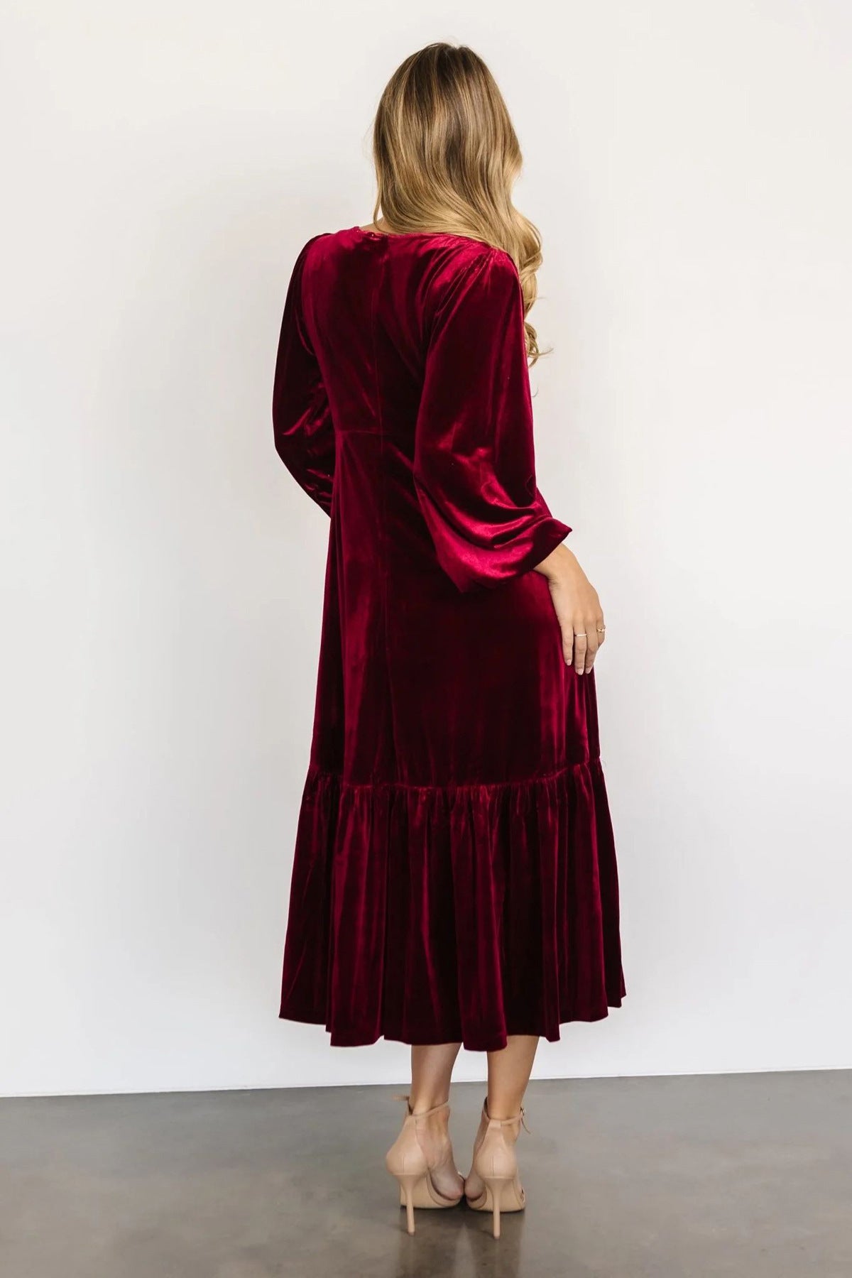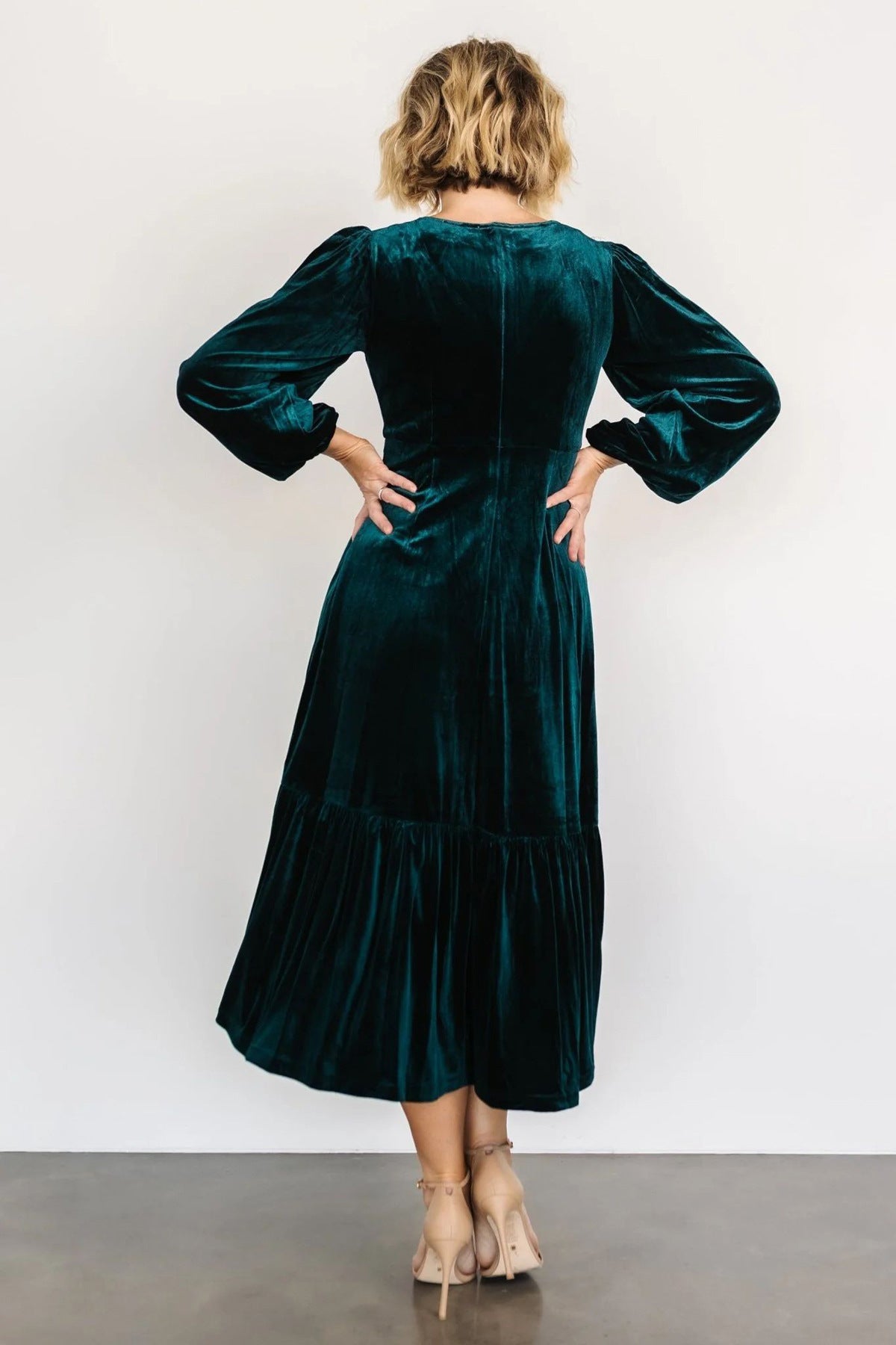 Add a touch of elegance to your occasion collection with the Rose Velvet Midi Dress. Crafted from luxuriously soft velvet, it features a graceful V-neckline, long sleeves, and a flowing midi length that drapes beautifully below the knee. Perfect for Christmas, New Year’s, or any evening event, it brings comfort and sophistication to every celebration.